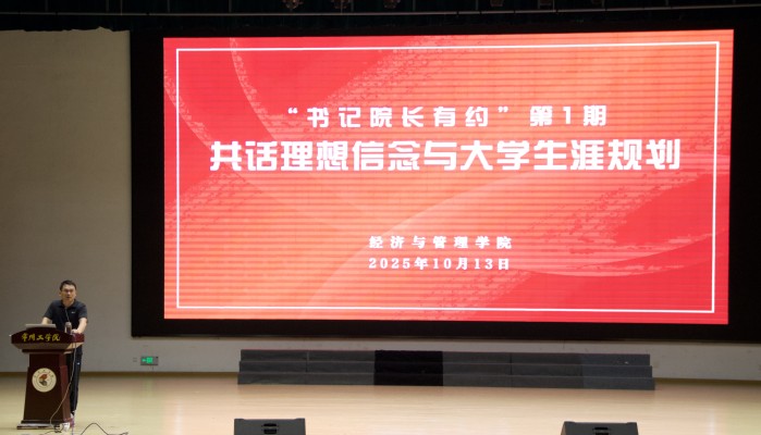 10月13日晚,经管学院“书记院长有约”第1期活动在文化艺术中心礼堂启幕,共话理想信念与大学生涯规划,作为学院加强师生交流、倾听学生心声的重要平台,本系列活动致力于回应学生成长关切,助力学院育人工作高质量发展。本期围绕学生成长需求、理想信念与生涯规划等话题,以主题报告的形式,搭建起师生间真诚沟通、双向奔赴的桥梁。学院党委书记谢金楼、党委副书记郭峥春以及相关教师出席活动。